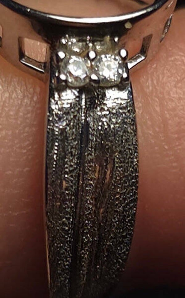 Aan weerszijden van het steentje schitteren twee kleine glimmende steentjes, die het geheel een tijdloze glans geven.