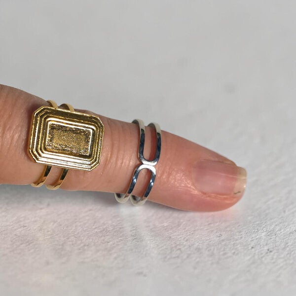 Dit sieraad is ontworpen om een dierbare herinnering tastbaar te maken en altijd dichtbij je te dragen. Het rechthoekige vulelement vormt de kern van de ring en verandert, zodra het gevuld is met jouw persoonlijke herinnering, in een uniek en betekenisvol symbool van liefde en verbinding.